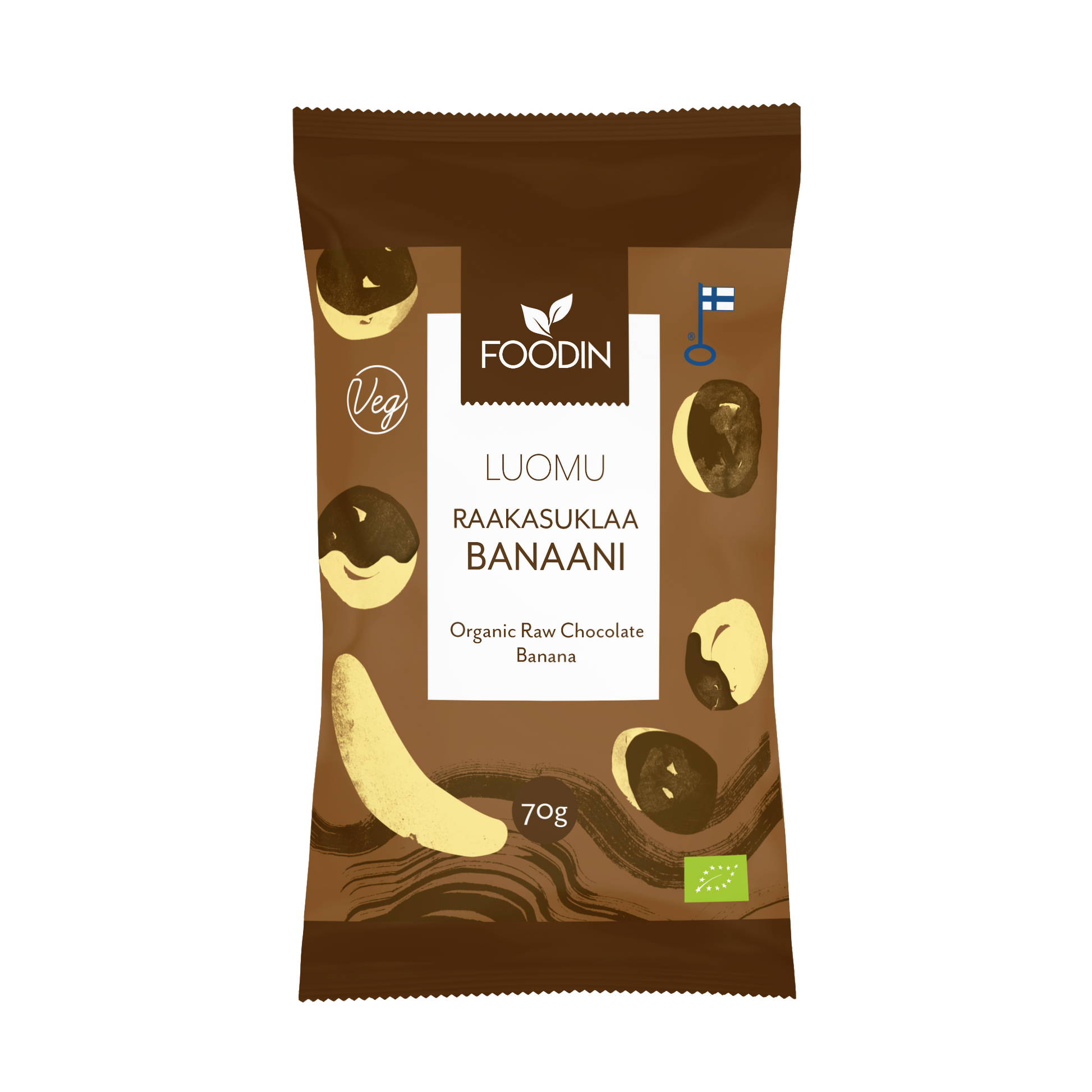 Foodin Raw Chocolate Banana är en utsökt, mjuk godbit täckt i raw choklad. Perfekt till parken, picknick, filmkvällar eller som ett energigivande mellanmål.