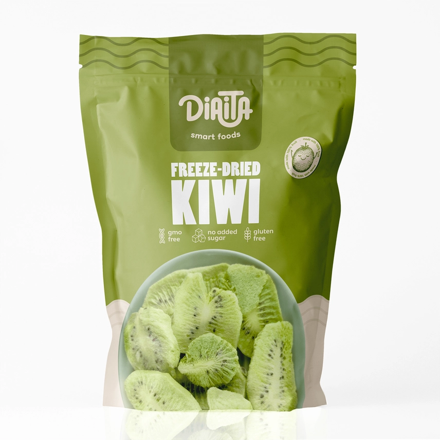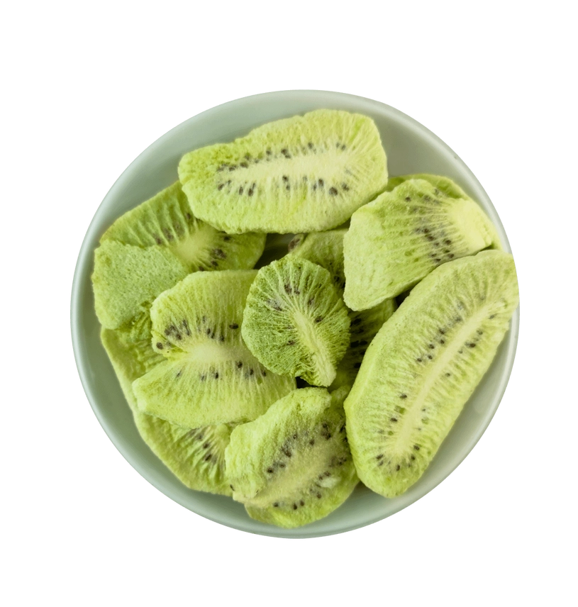 Vår frystorkade kiwi finns tillgänglig för dig i återförslutningsbara snackpåsar.