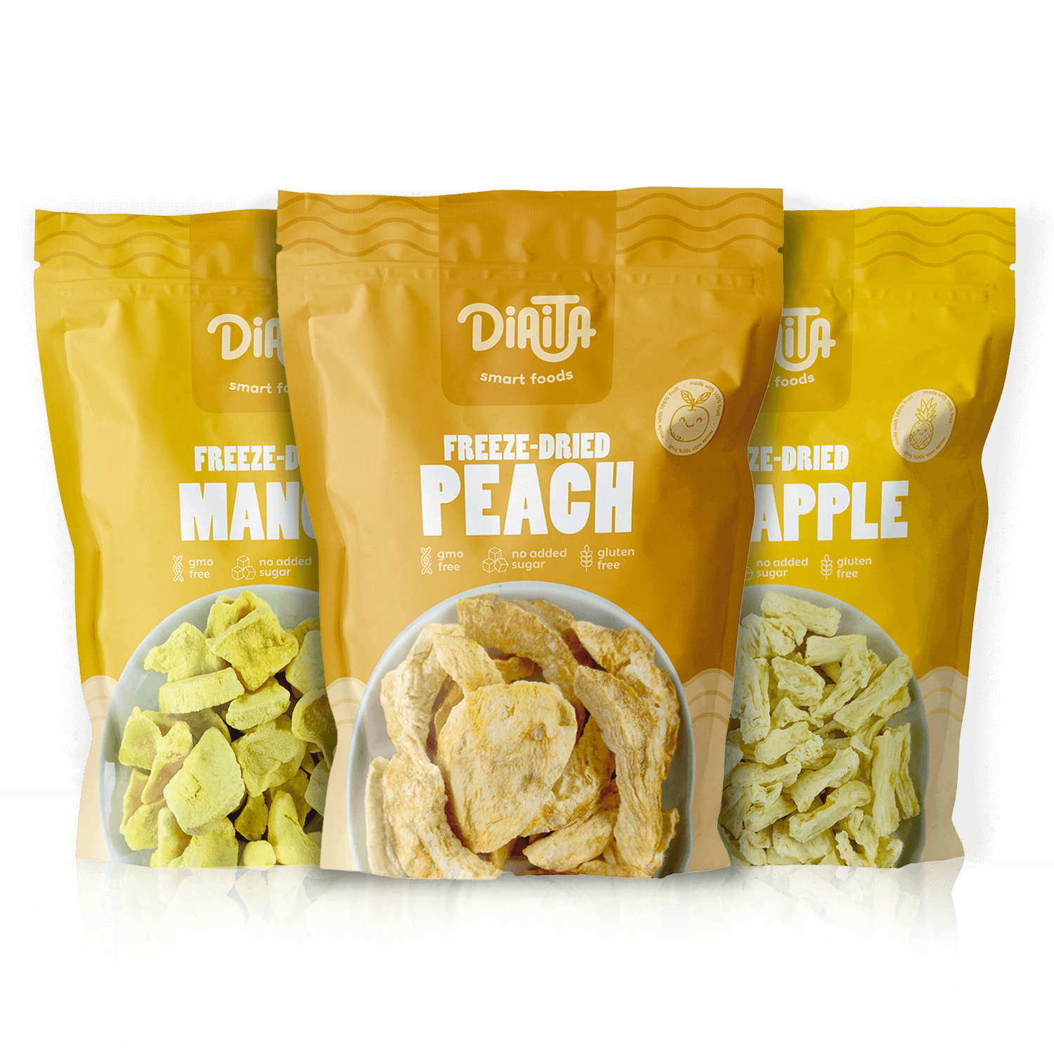 - Varje påse innehåller endast 100% frystorkad frukt. Inget socker eller något annat tillsatt.